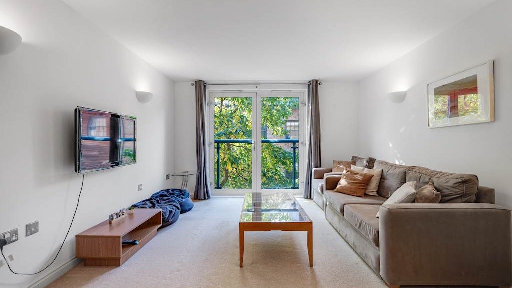 The apartment features a bright open-plan living and dining area with defined zones for relaxation and entertaining, leading onto a Juliet balcony overlooking the picturesque Cole Street. The kitchen is fully fitted with integrated appliances and both double bedrooms are of excellent size, with one benefiting from an en-suite. A second contemporary bathroom completes the home.
